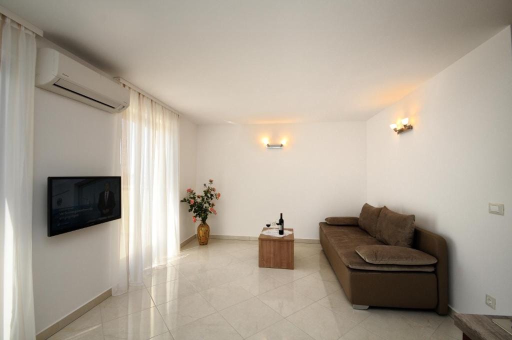 It offers separate bedrooms, living room with kitchenette and dining area with sofa bed (160 × 200). Bathroom with shower / WC available. The apartment is equipped with air conditioning, satellite TV and Internet.